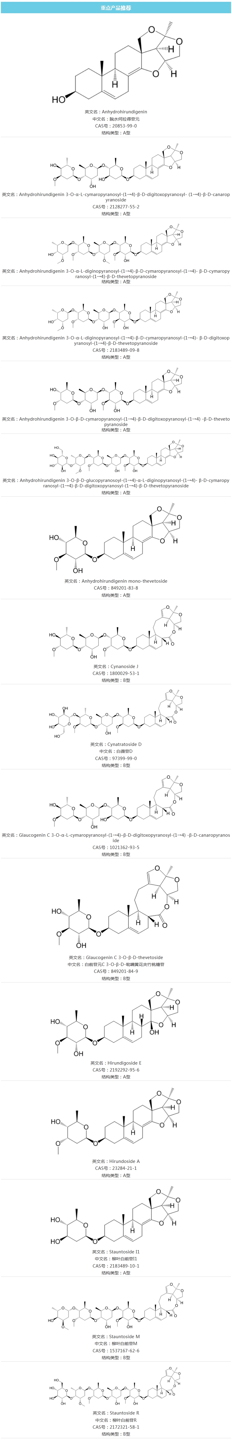 目前我司已有多種白前C21甾體皂苷類化合物,均為現(xiàn)貨,其中絕大部分為獨家化合物,歡迎咨詢!