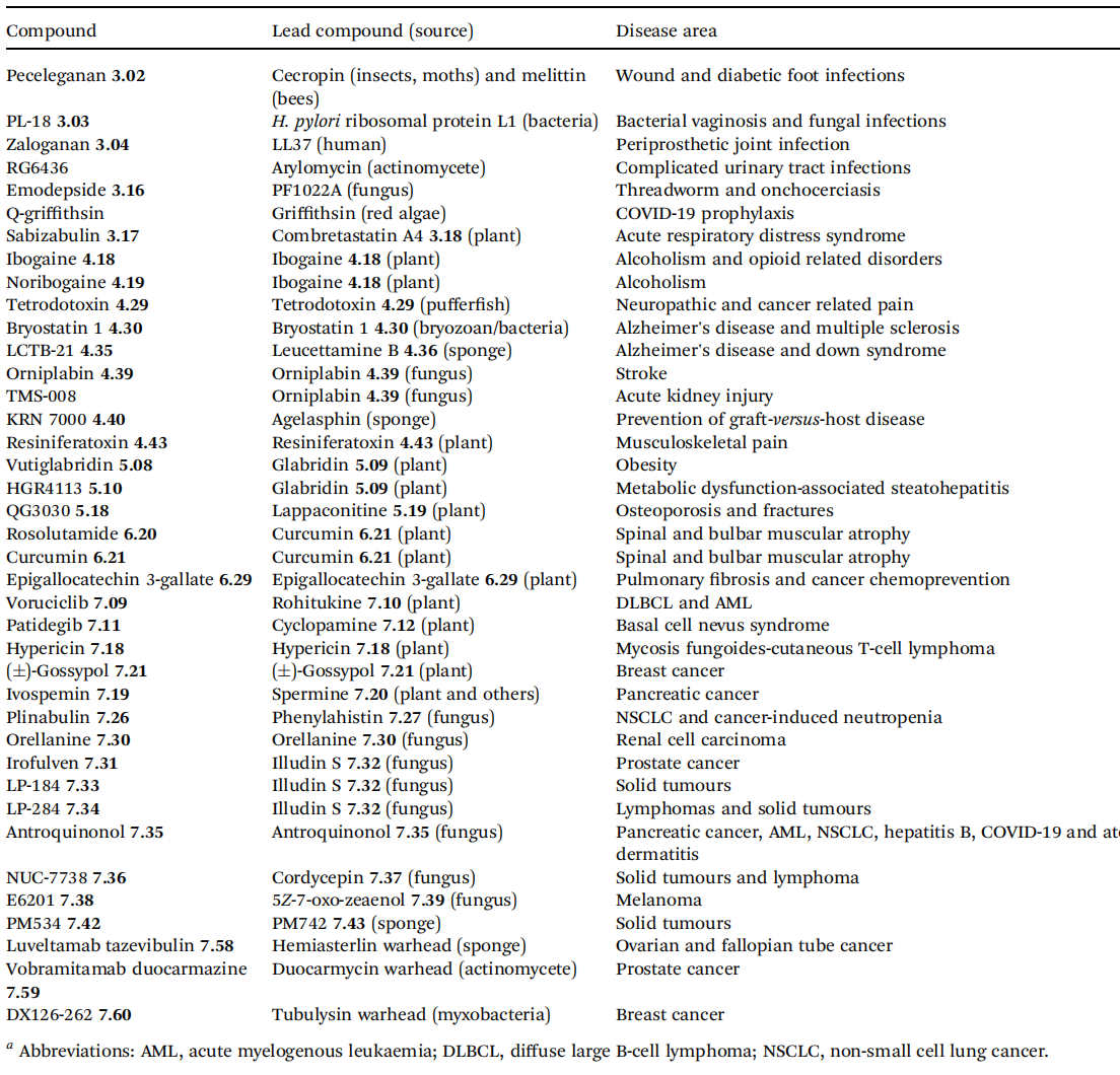 在醫(yī)藥科研領域,天然產(chǎn)物及其衍生物一直是備受矚目的焦點,它們?yōu)樾滤幯邪l(fā)提供了豐富的靈感與物質基礎。今天,普思生物特別為大家?guī)硪粓錾疃冉庾x,聚焦于發(fā)表在《Natural Product Reports》上的文章——《Natural product-derived compounds in clinical trials and drug approvals》。這篇文章將帶我們一同探索天然產(chǎn)物衍化合物在臨床試驗與藥物審批方面的最新進展與前沿動態(tài)。