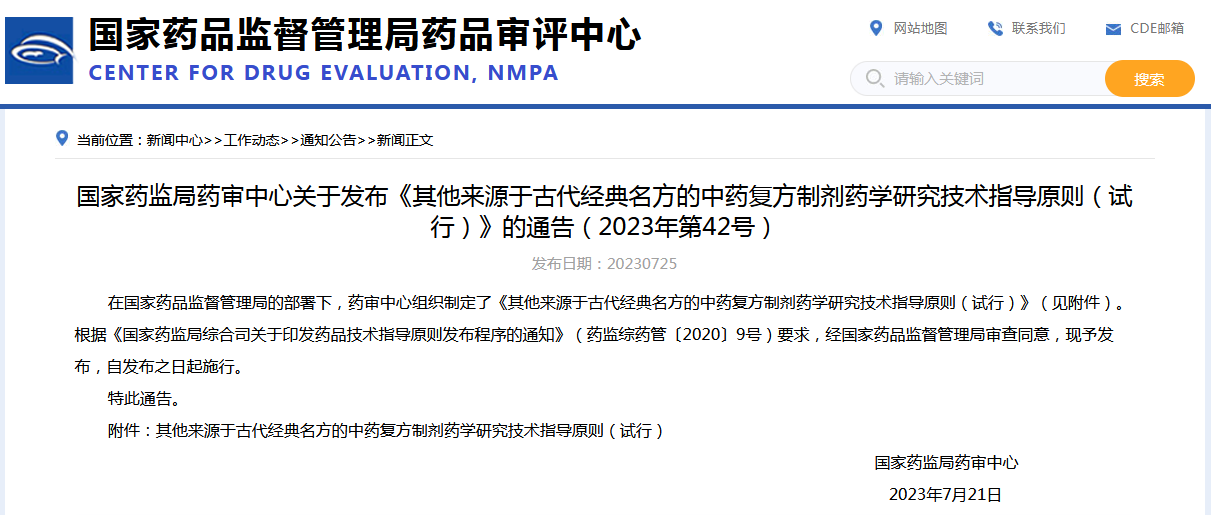 CDE發(fā)布兩項(xiàng)中藥技術(shù)指導(dǎo)原則